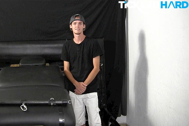 Since Clay had the pleasure of being tickled by Franco, he's been asking Franco for an opportunity to tickle someone else. So, Franco brings in 21-year-old Michael for Clay to play with. Michael strips down to just his socks, and Franco and Clay strap him down. Clay starts by tickling Michael's armpits and ribs, and Franco shows him how to find the most ticklish area and exploit it. Clay lightly tickles Michael's stomach, then discovers a surprisingly ticklish area in Michael's inner thighs. Franco lubes up Clay's hands and helps him tickle the legs a bit before Clay tickles Michael's torso some more. Clay removes Michael's socks, and Franco shows him where to tickle Michael's fresh, size 12 bare feet. They tickle his soft soles and just below his toes before lubing up his foot, covering his eyes and tickling him with a rubber soap saver.